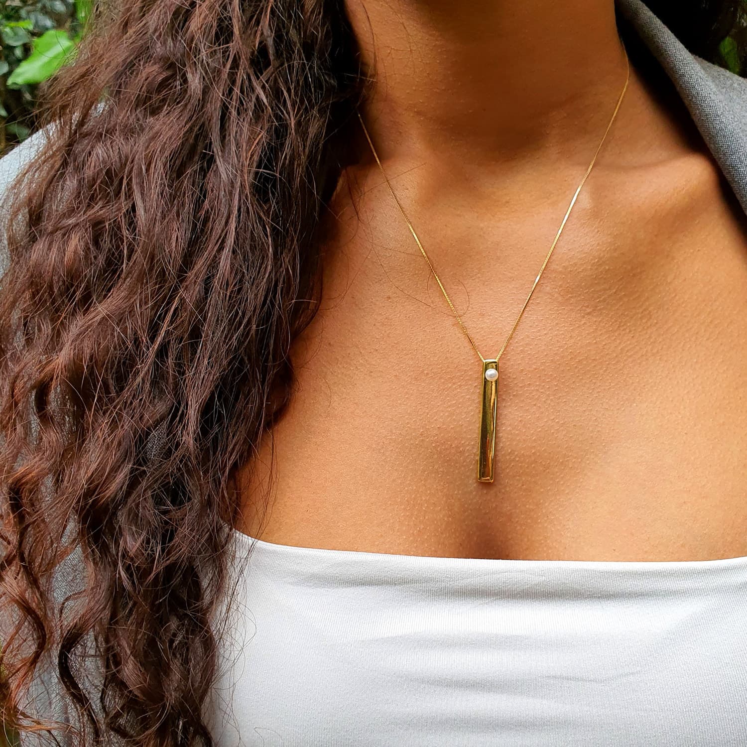 Χειροποίητο επιχρυσωμένο μενταγιόν από ασήμι 925 με λευκό μαργαριτάρι.
