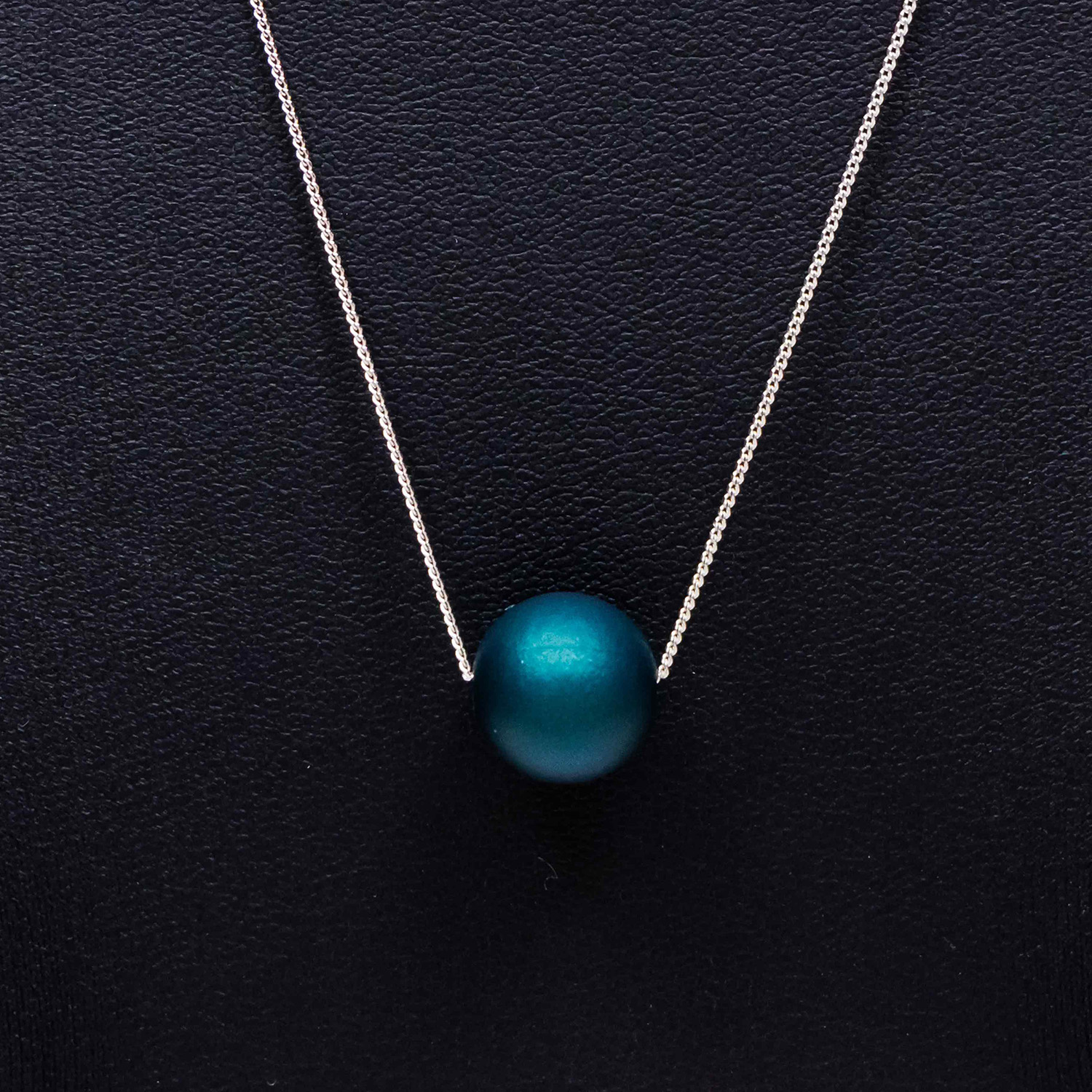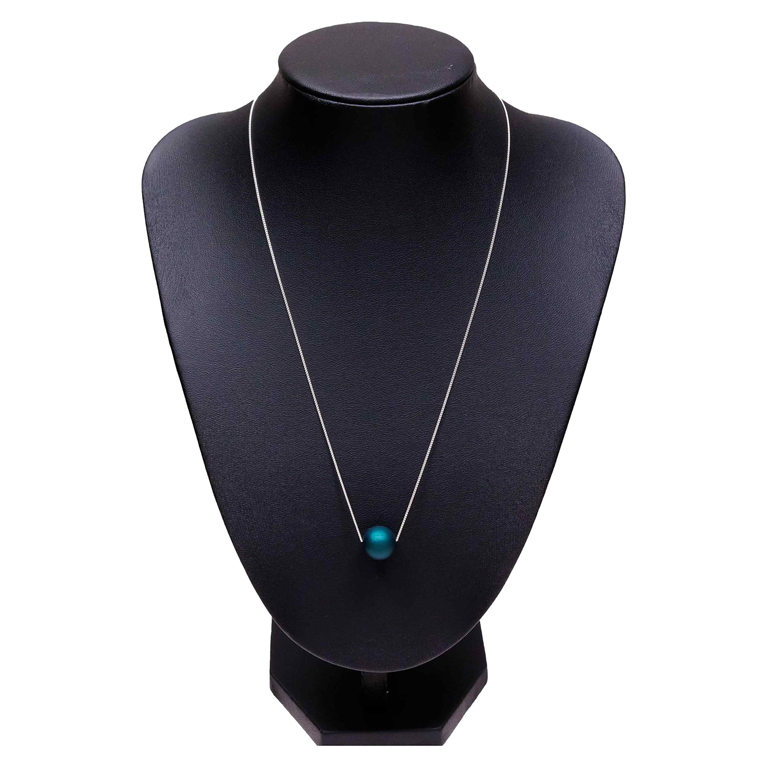 Ένα κομψό μενταγιόν με αλυσίδα από ασήμι 925 και πράσινη χάντρα με επικάλυψη από καουτσούκ
