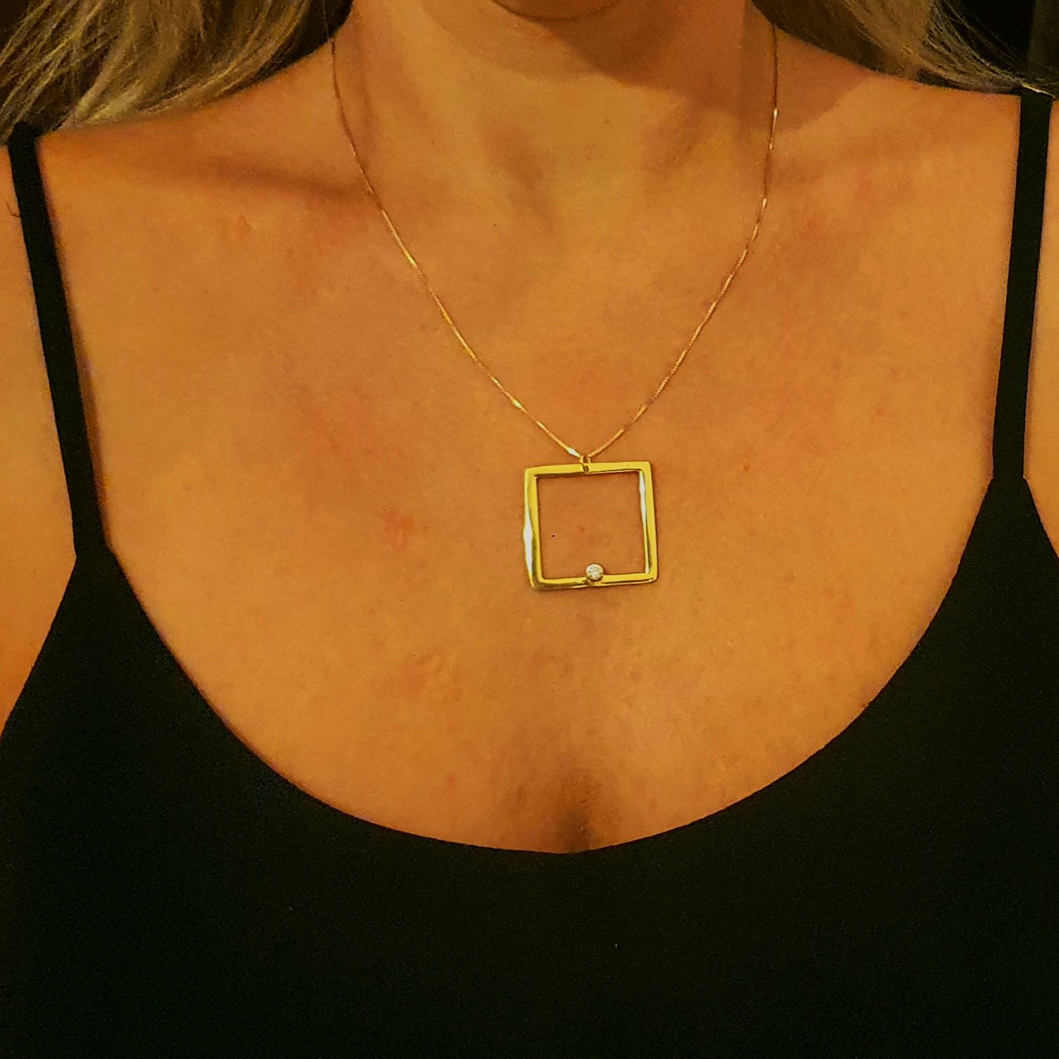 “My strass”, Γυναικείο ασημένιο μενταγιόν – Τετράγωνο GW (cod: 9024)