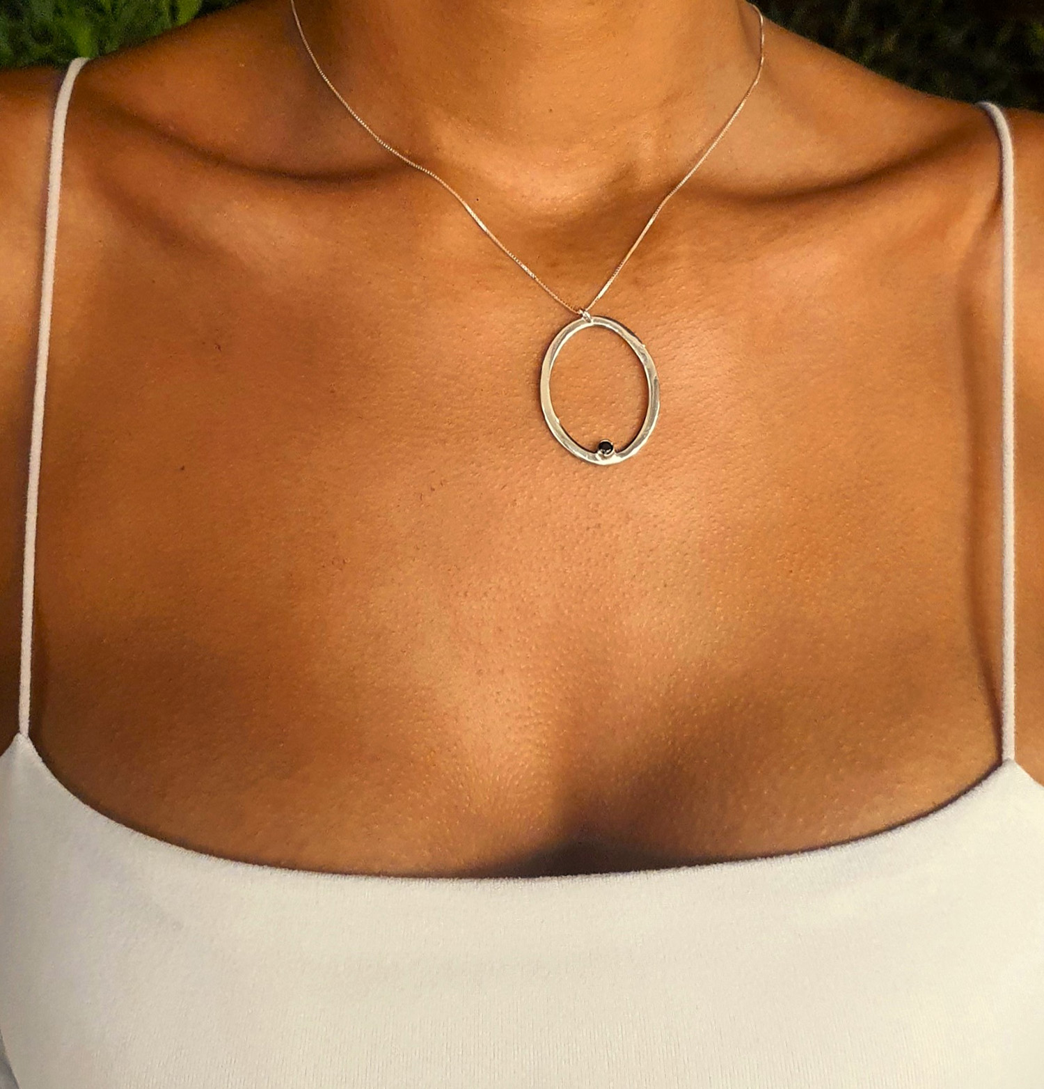 “My strass”, Γυναικείο ασημένιο μενταγιόν – Oval WB (cod: 8980)