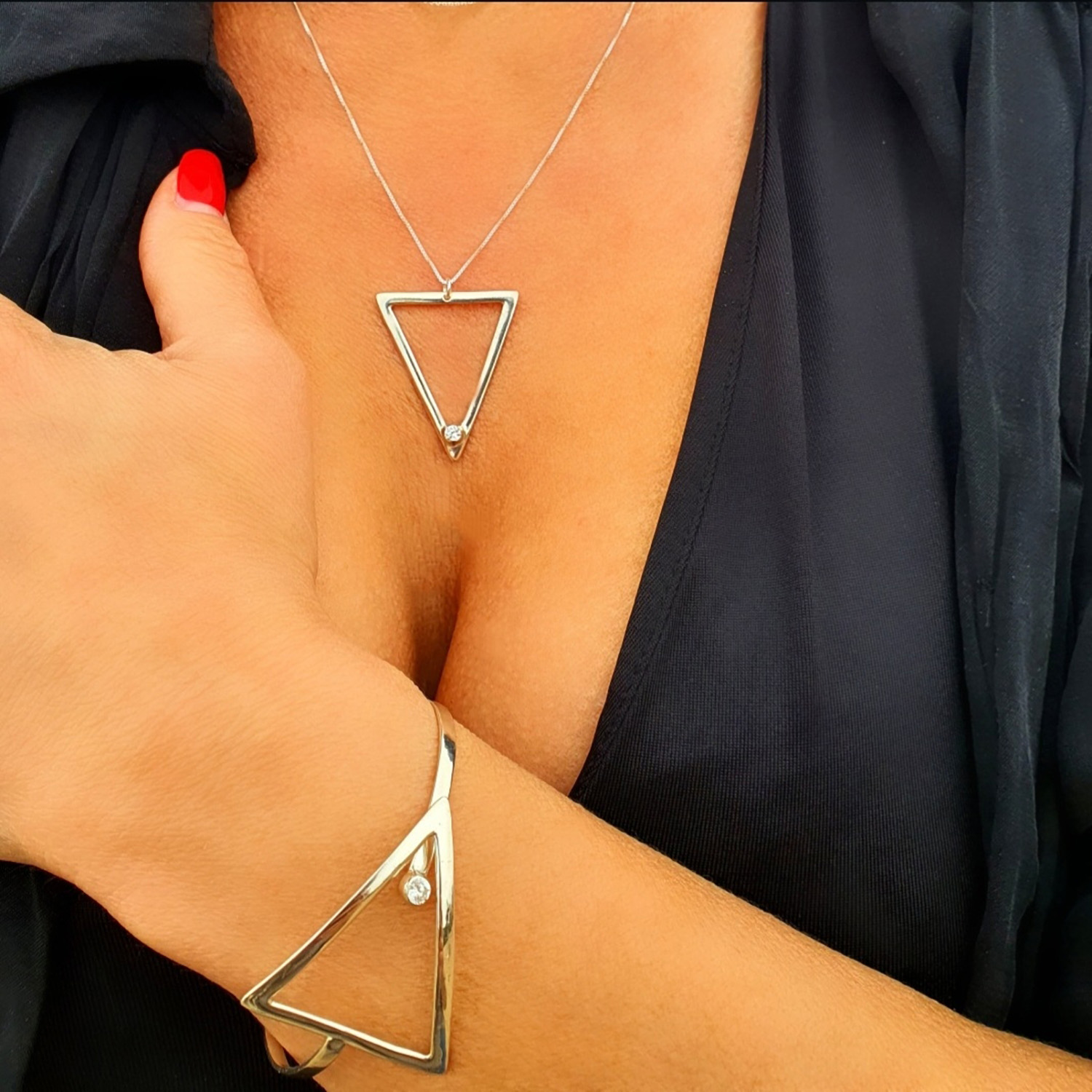“My strass”, Γυναικείο ασημένιο μενταγιόν – Τρίγωνο WW (cod: 9034)